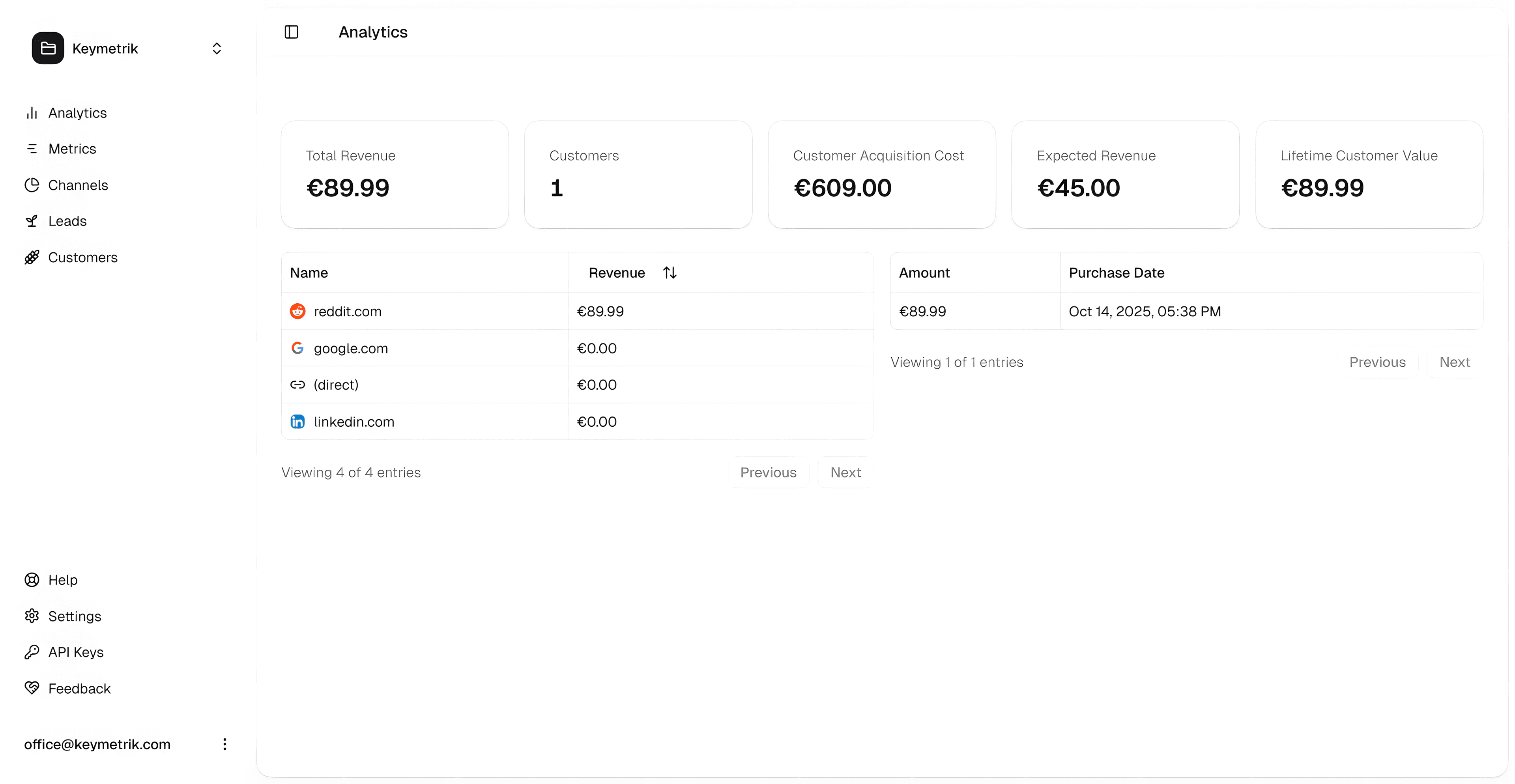 See where your customers actually come from, what each channel is worth and what it costs you to grow. Per channel and across your entire business. On one screen in plain numbers.
