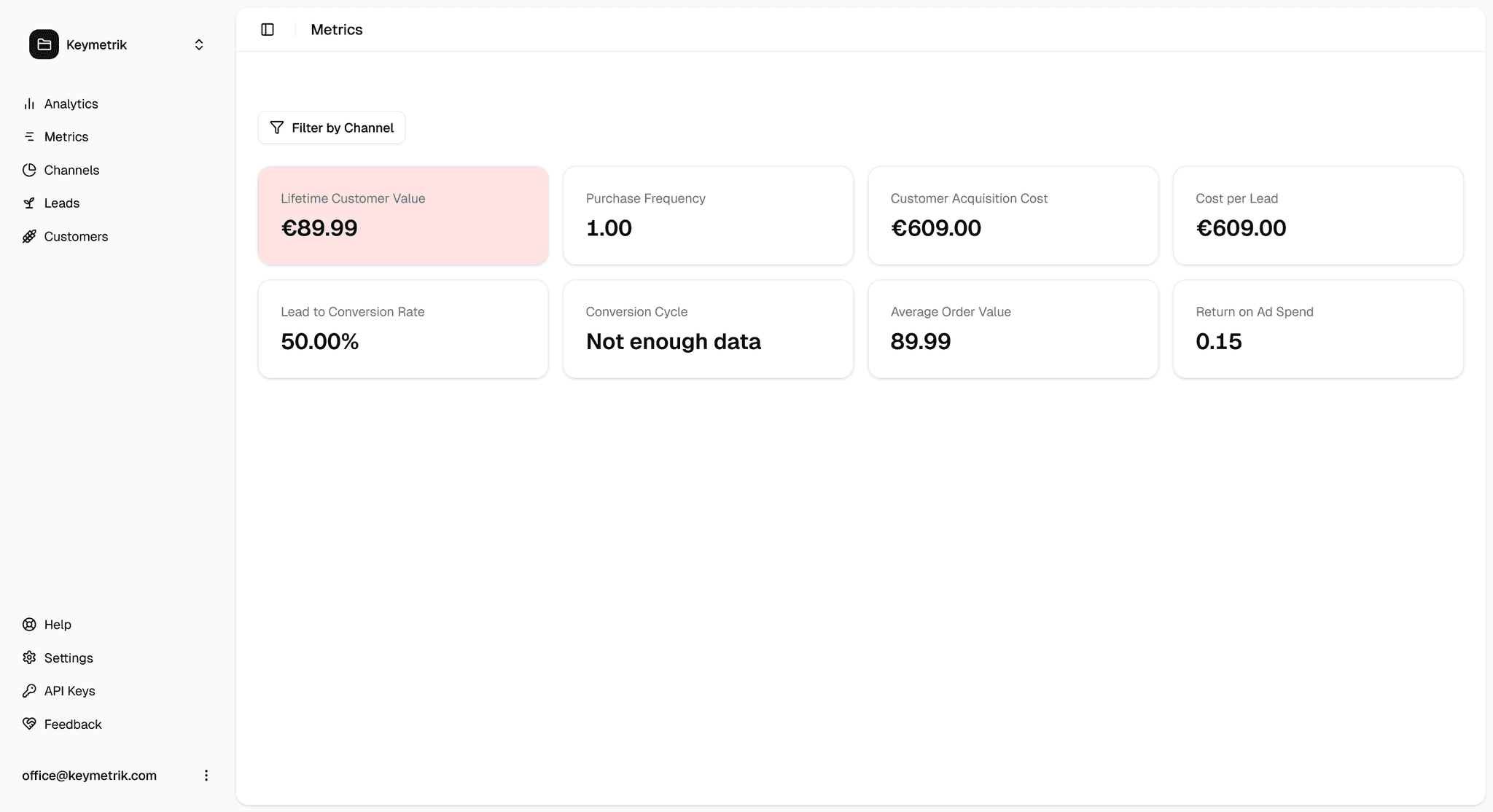 See where your customers actually come from, what each channel is worth and what it costs you to grow. Per channel and across your entire business. On one screen in plain numbers.