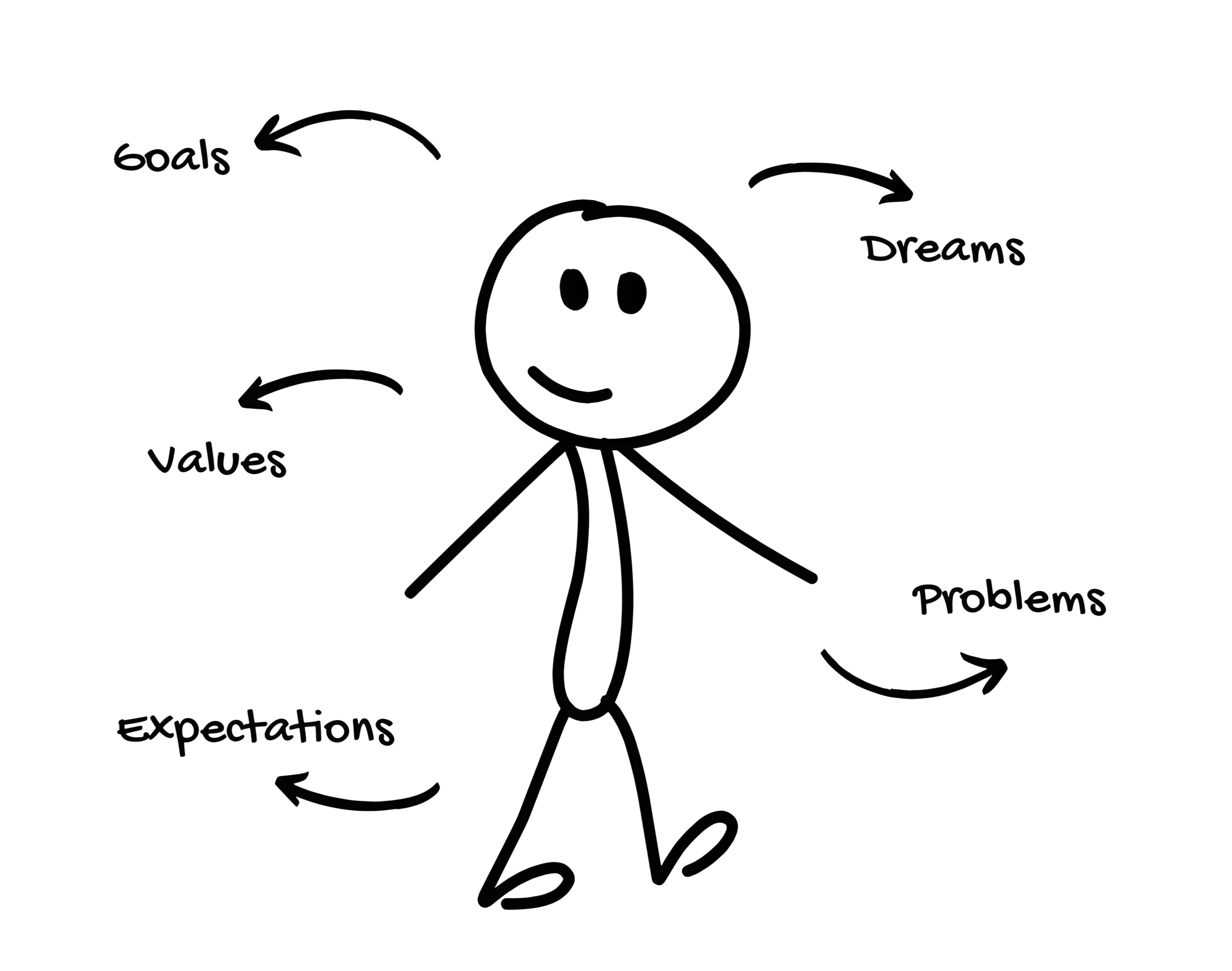 He has goals, dreams, values, problems that keep him awake at night, expectations for his life and so much more.