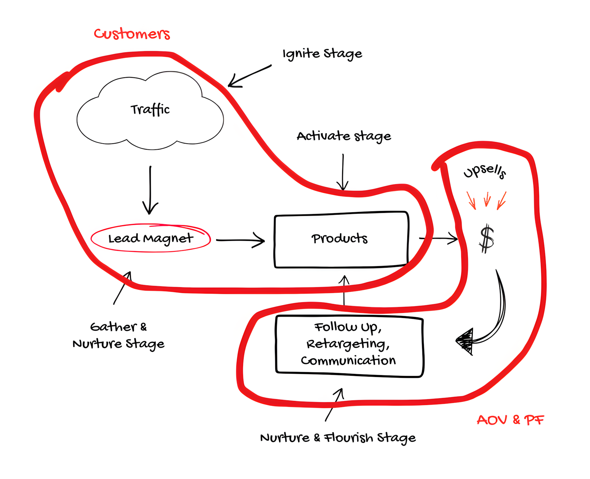 We’ve talked about the strategy to grow your business, remember? You first want to maximize then multiply. So, if you already have customers you focus on AOV and PF – as seen in the blueprint above.
